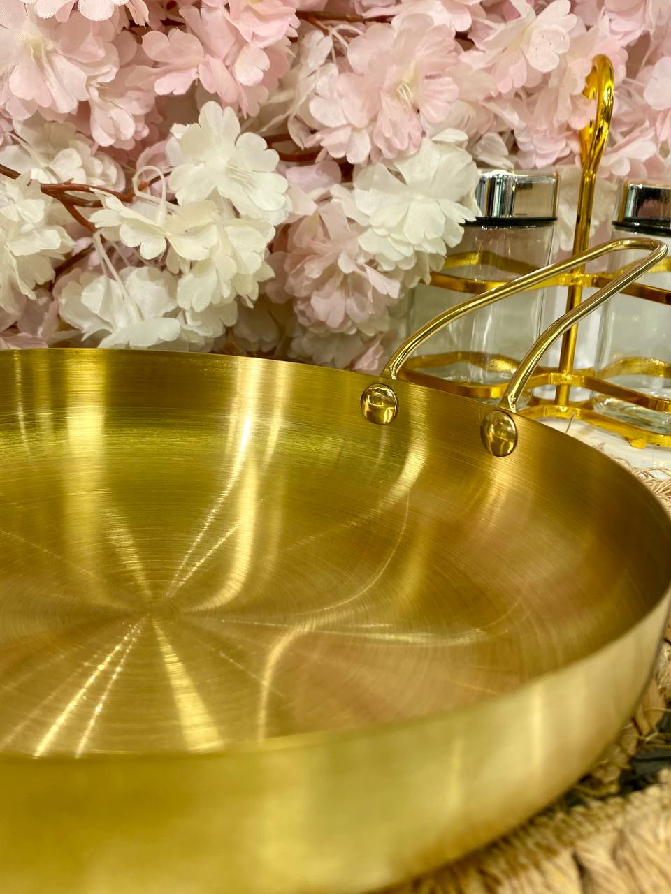 وعاء تقديم كوري، مصنوع من الفولاذ المقاوم للصدأ بلمسة نهائية ذهبية فاخرة