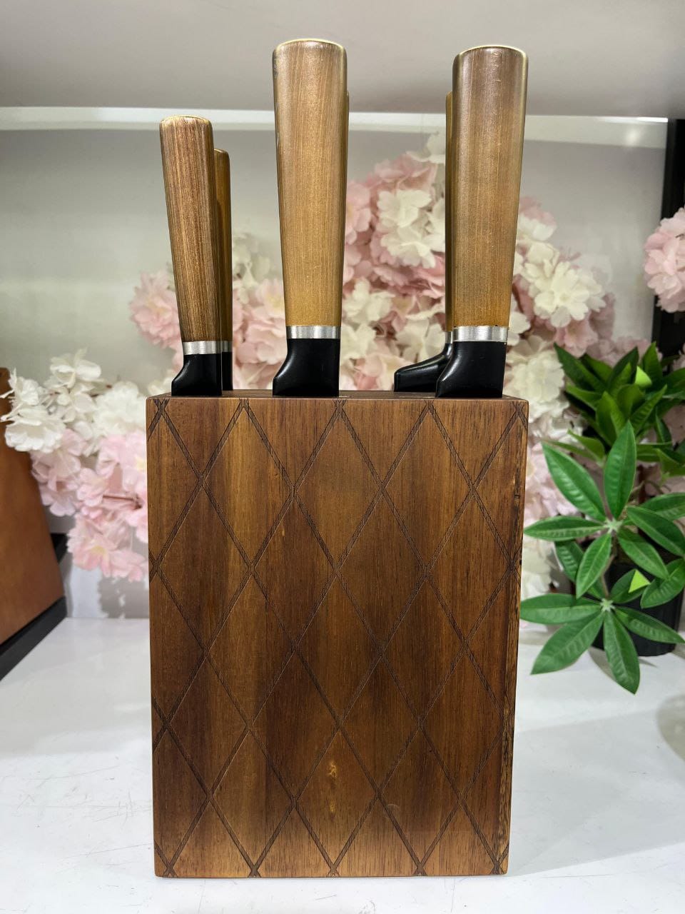 Crafted from premium stainless steel, this 6-piece knife set delivers professional-grade performance for every culinary task. Each blade combines razor-sharp precision with exceptional durability, while sleek wooden handles provide comfort and elegance. Whether you're slicing, dicing, or chopping, these knives transform everyday cooking into an art form. Designed for home chefs who demand quality and reliability, this collection ensures consistent, restaurant-quality results with every cut. A complete kitchen essential that elevates your cooking experience.
