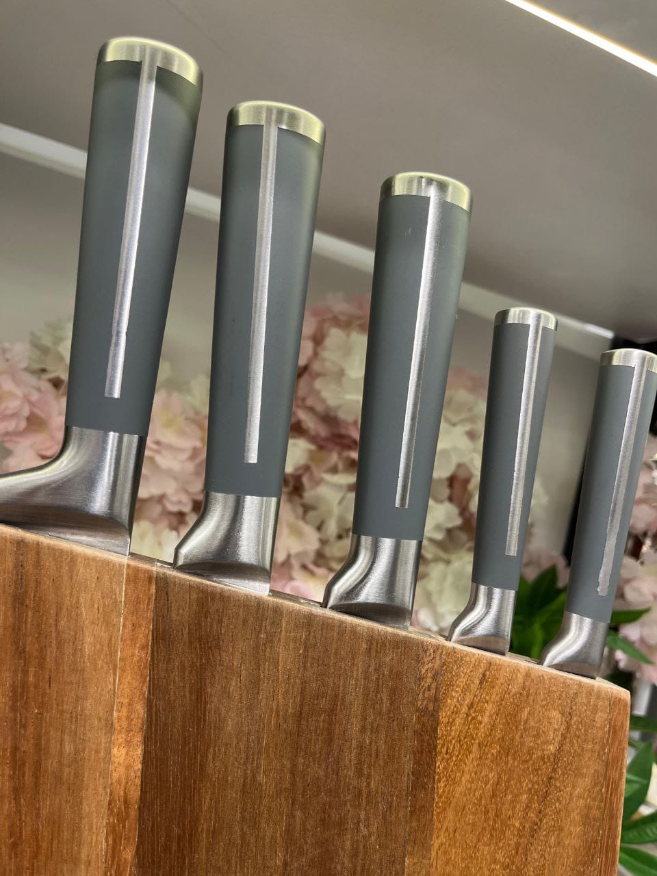 Master your culinary craft with this premium five-piece stainless steel knife set, engineered for precision and durability. Each blade combines superior edge retention with exceptional strength, delivering the sharp performance your kitchen demands. From delicate slicing to robust chopping, this versatile collection handles every cutting task with professional-grade reliability. Crafted from high-quality stainless steel, these knives resist corrosion while maintaining their keen edge through countless meals. Elevate your cooking experience with tools that match your skill and ambition.