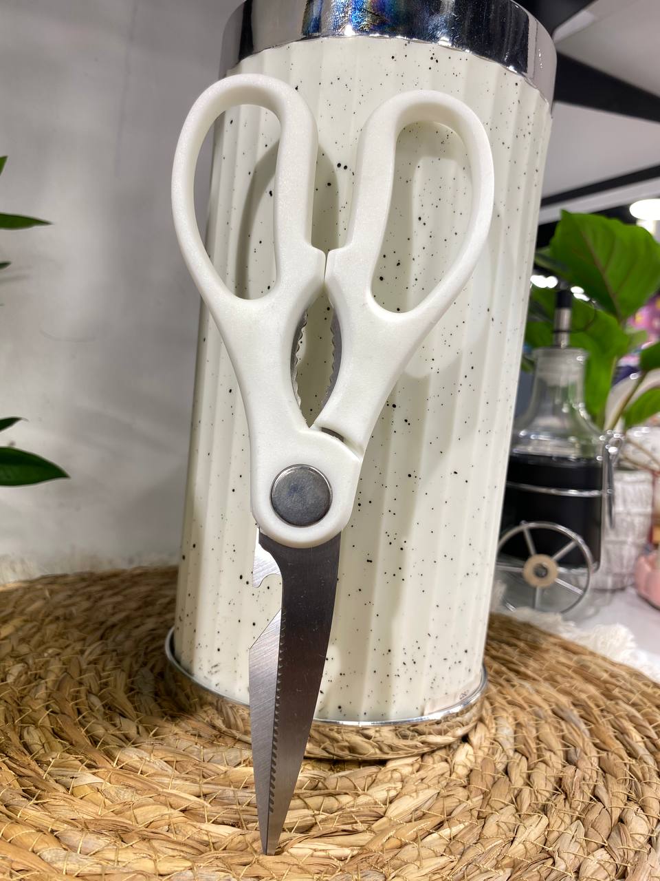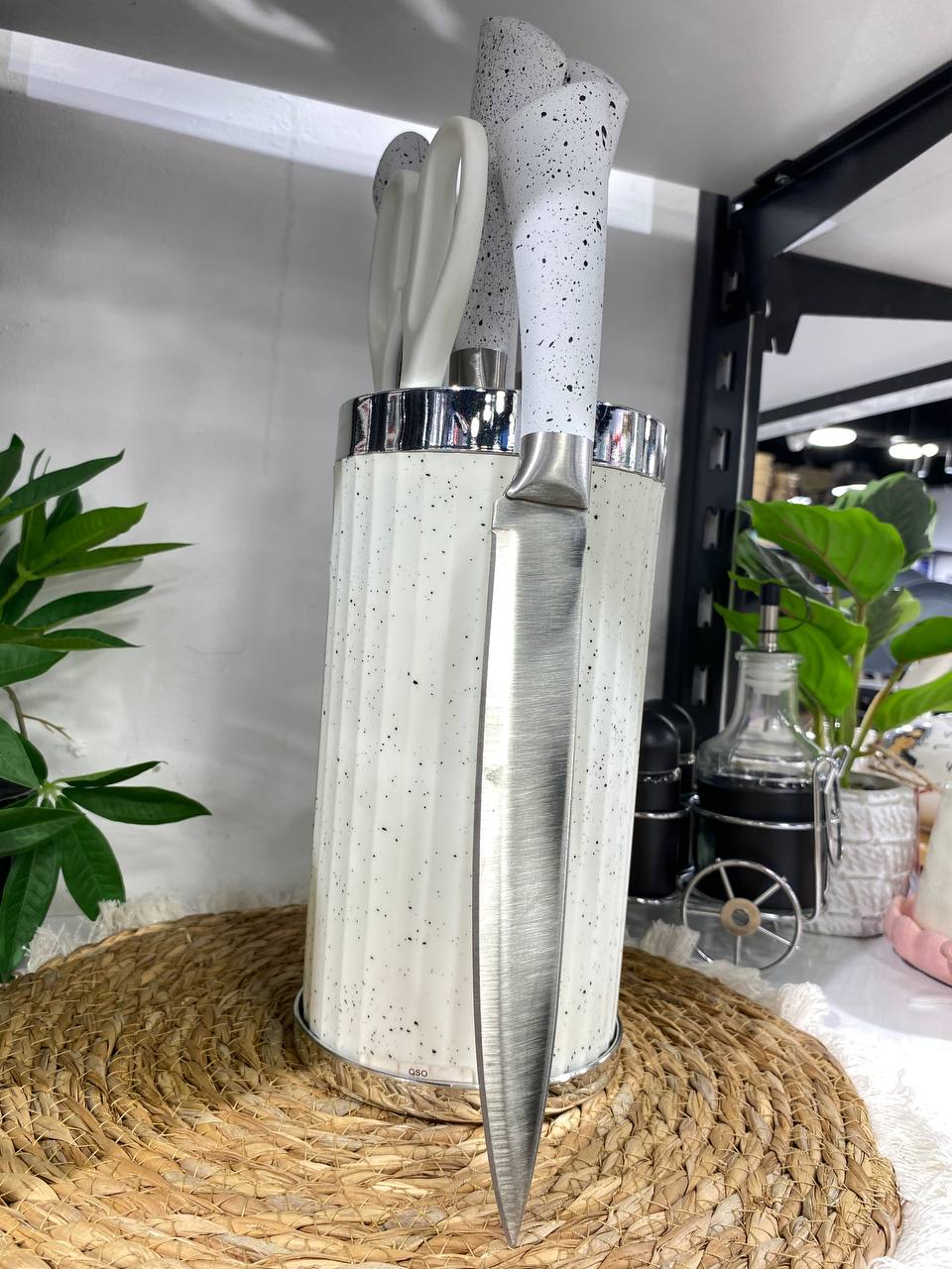Elevate your kitchen with this versatile granite rotating knife set, featuring five precision-crafted blades in varying sizes to handle every cutting task with ease. From delicate slicing to robust chopping, each knife delivers exceptional performance. The included practical scissors add another dimension to your culinary toolkit. Designed with a space-conscious approach, the rotating base keeps all tools organized and within arm's reach, eliminating clutter while maintaining accessibility. Perfect for home cooks and culinary enthusiasts seeking quality and efficiency in one elegant package.